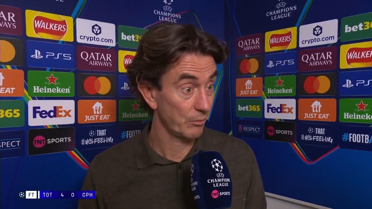 在欧冠联赛阶段第4轮主场4-0大胜哥本哈根后,托特纳姆热刺主教练托马斯·弗兰克接受了TNT体育的专访,对球队表现与关键球员发挥给予高度评价。