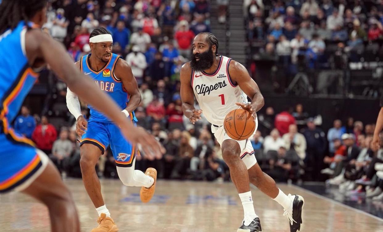 本场首发阵容方面,快船派出哈登、邓恩、祖巴茨、琼斯和塔图姆(伦纳德轮休),雷霆则以亚历山大、切特、哈尔滕施泰因、华莱士和多尔特应战。首节比赛成为哈登个人表演秀,他连续命中三记三分并制造杀伤,单节狂砍17分带领快船打出12-2开局。尽管亚历山大用追身三分止血,但快船仍以33-23领先结束首节。