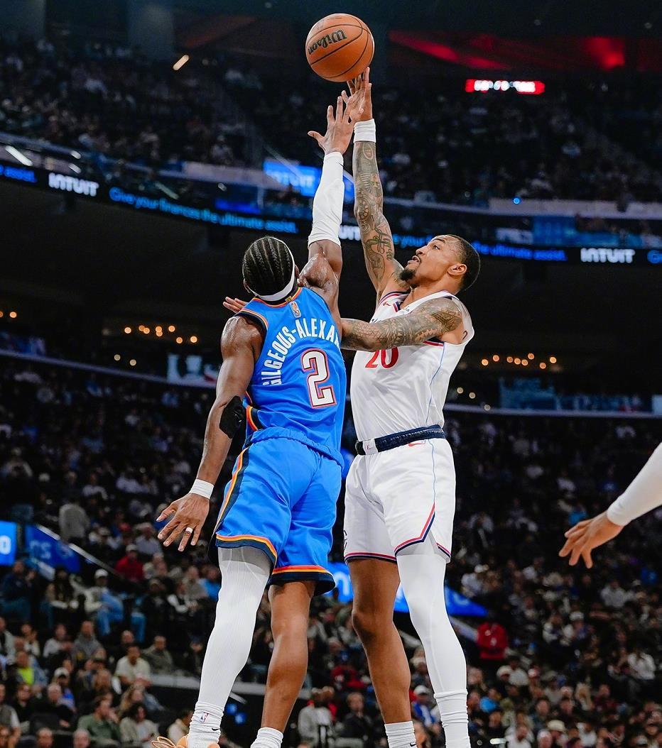 回到比赛,暂停效果立竿见影,博格丹和哈登连中三分,一波6-0分差重新回到12分。第一节最后一点时间,双方打出对攻态势,亚历山大急停跳投命中,祖巴茨篮下扣篮打中,乔三分也有,科林斯2+1回应,乔三分压哨命中,这样首节打完快船33-23领先雷霆10分。