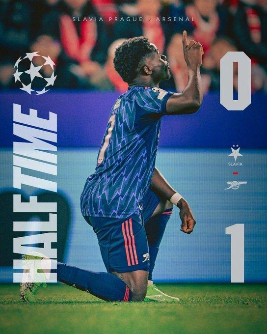 第32分钟,队长萨卡主罚点球命中,尽管门将判断正确,但球速过快无力回天。此球让萨卡成为阿森纳队史首位连续四个欧冠客场进球的球员。