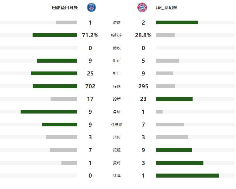 第74分钟,奥利塞后场拿球被抢断,大巴黎顺势形成反击,李刚仁的传中,助攻内维斯侧钩破门,将比分追至1 - 2。不过接下来的时间,拜仁没有再给大巴黎机会,如愿将2 - 1的比分保持到了最后。