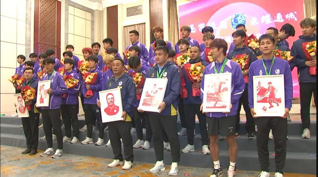 欢迎会上的灯光柔和地打在李太镇脸上,这位被孩子们称为“贤爸”、带领南通队在苏超赛场上叱咤风云、一路冲冠的东北汉子,一听到那些孩子说:“我心目中的英雄,是‘贤爸’”,他低下头,眼角泛着光,努力平复呼吸的声音。