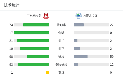在佛山世纪莲体育中心体育场进行的A组揭幕战中,广东队展现出了强大的实力,以5:0的比分完胜内蒙古队,成功斩获开门红。上半场第20分钟,广东队26号选手蒋晶以一记精准远射直挂网窝,为广东队取得1:0的领先,并将这一优势保持至上半场结束。