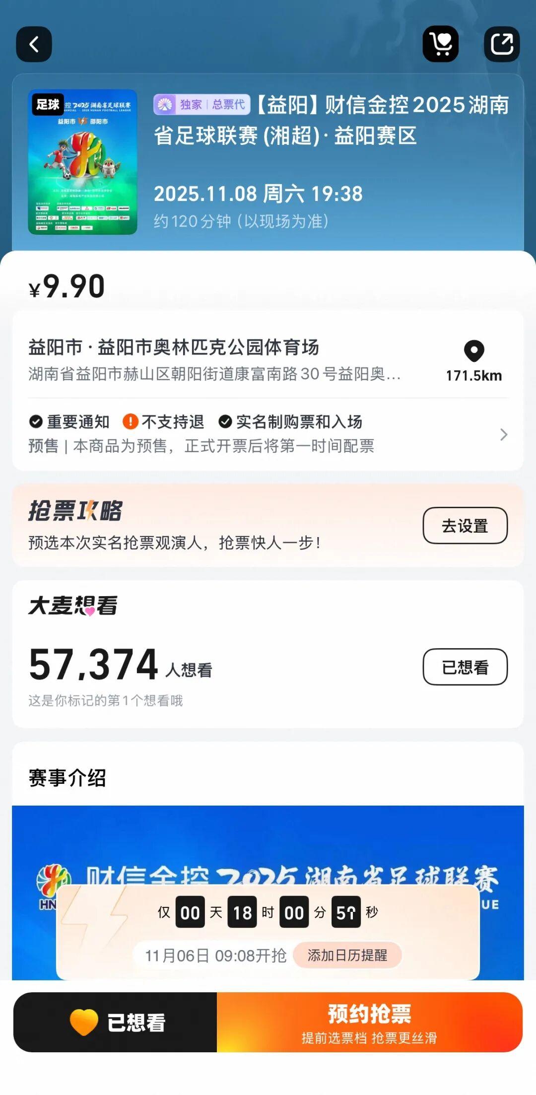 “湘超”益阳VS邵阳,门票预约购票通道已开启,速来抢购!