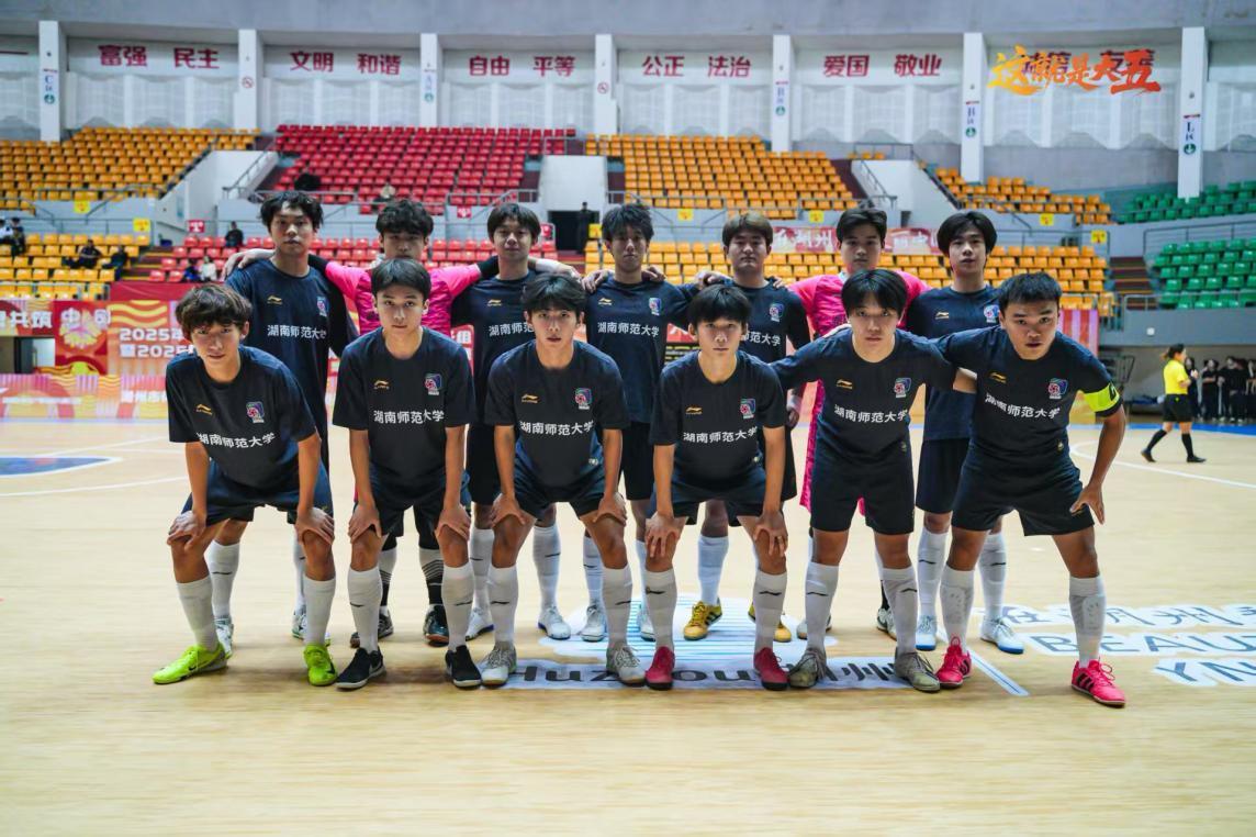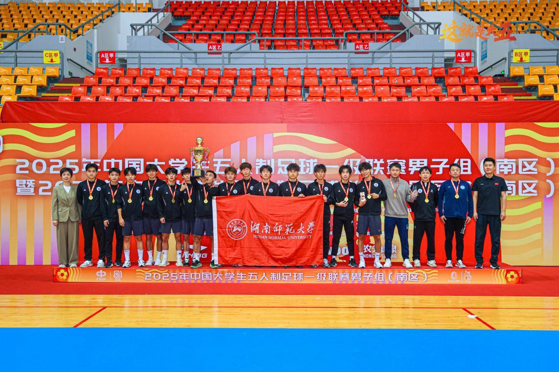 2025年11月4日,中国大学生五人制足球一级联赛(南区)总决赛在浙江湖州体育馆圆满收官。经过多轮激烈角逐,湖南师范大学男子足球队凭借出色的技战术表现和顽强拼搏精神,最终以3:1战胜华中师范大学,成功登顶南区冠军宝座。