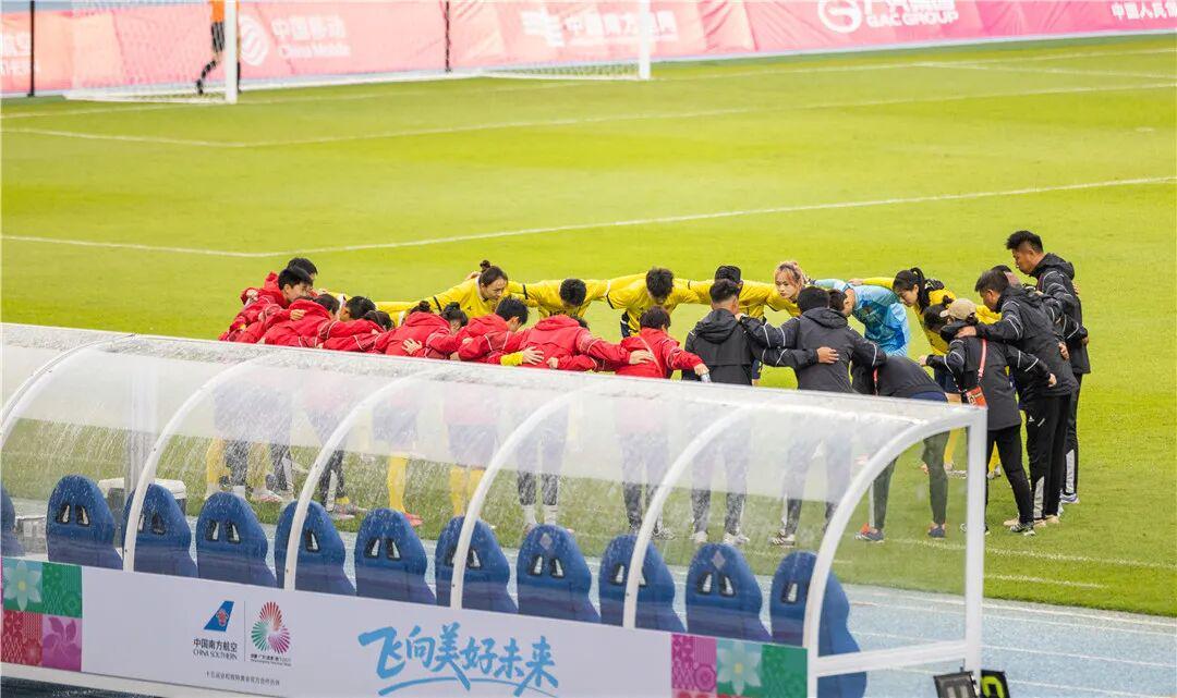 11月4日,第十五届全国运动会足球项目(女子成年组)赛事在顺德德胜体育中心进行了一场小组赛,由四川队对阵北京队。