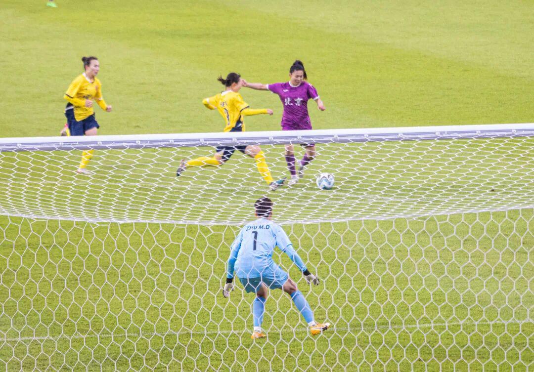 易边再战,北京队攻势不减。下半场开始不到4分钟,17号球员古雅沙在禁区外围接球后果断起脚远射,皮球直挂网窝,打破场上僵局,将比分改写为1:0。第53分钟,北京队再度发力,9号球员王新灵从右路快速突破,在角度极小的情况下果断射门,球击中门柱后弹入网内,将比分扩大为2:0。两粒进球均展现了北京队球员出色的个人技术与团队配合。