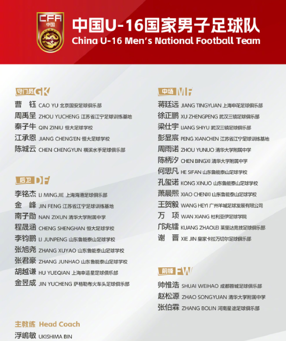 此外,U16国少将于11月6日至11月30日在重庆市组织本年度第五期集训并参赛。山东泰山队的李钧鹏、张旭尧、张君豪、何思凡、孔玺诺、萧晨熙六人入选。至此,在三级国字号中,泰山队本期共有15名球员参加集训,展现了泰山队青训的强大实力和深厚底蕴。