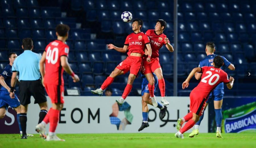 比赛中,海港球员虽获几次头球攻门良机,却未能把握