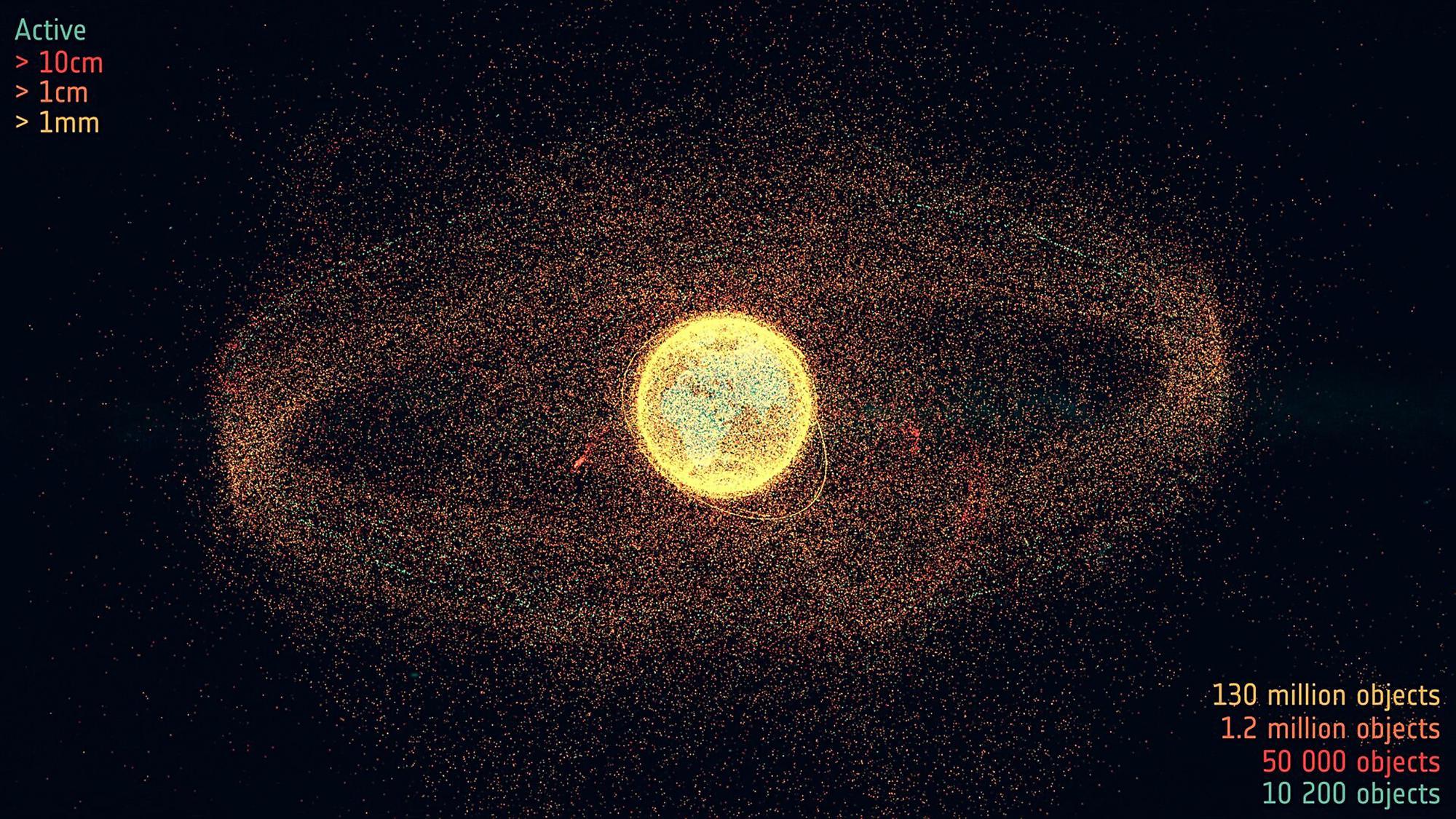 自1957年人类进入太空时代以来,已经向太空中发射了超过6.5万个航天器。这些航天器报废后,就有可能成为在轨道上流浪的太空垃圾。此外,还有用于发射航天器的火箭残骸、宇航员在太空中丢失或扔掉的工具等,都会变成太空垃圾。太空垃圾之间还有可能相互碰撞,产生更小的碎片。