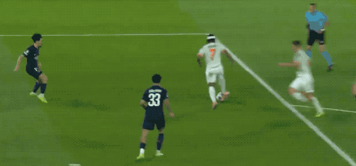 第30分钟,格纳布里的冷射击中门柱,弹了出来,巴黎逃过一劫。