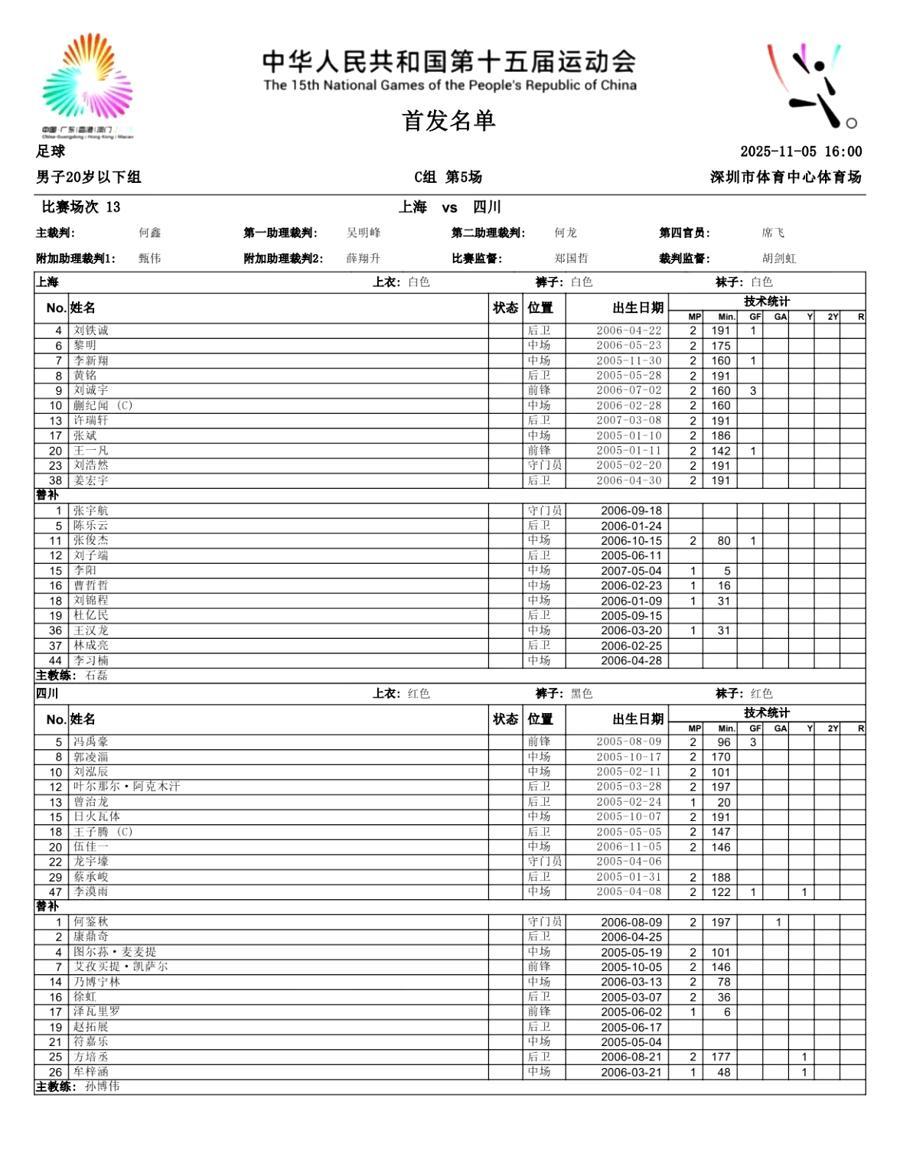 11月5日下午,深圳大湾区全运会男足U20项目C组小组赛迎来关键对决。上海足坛名宿徐根宝率领的上海U20全运男足,在0比1落后的绝境下,凭借蒯纪闻的梅开二度,以2比2惊险战平四川队,以小组头名身份强势晋级八强。这场胜利不仅延续了球队的晋级希望,更成为81岁老帅徐根宝执教生涯的又一高光时刻。