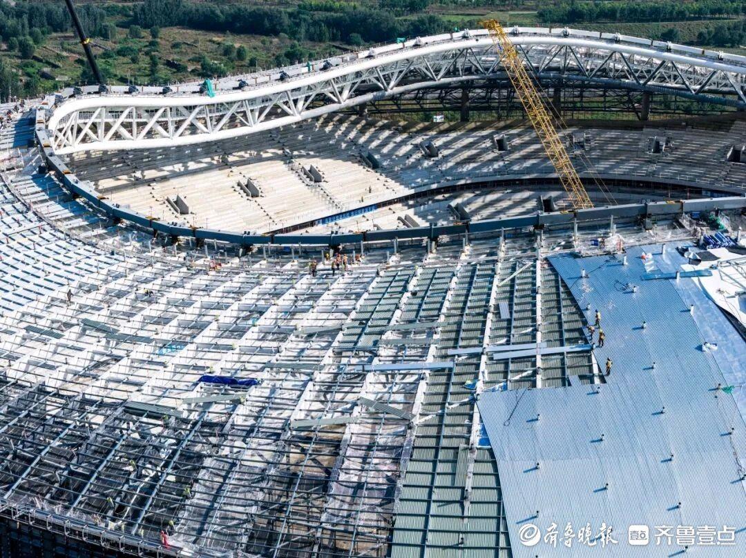目前,项目屋盖钢结构已全面完工,金属屋面、防水层等施工正同步推进。下一步将重点攻坚内环索膜结构,通过打造透光性优异的“透明屏障”,为赛场引入自然光照,进一步提升视觉舒适度与比赛氛围。