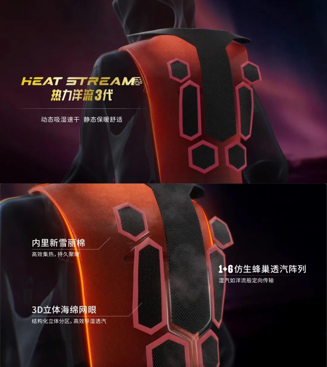 为了解决“运动湿冷、静止失温”的雪场运动痛点,安踏冠军开山雪服V3使用了全新升级的热力洋流3代系统,带来“动态吸湿速干,静态保暖舒适”的优异性能。