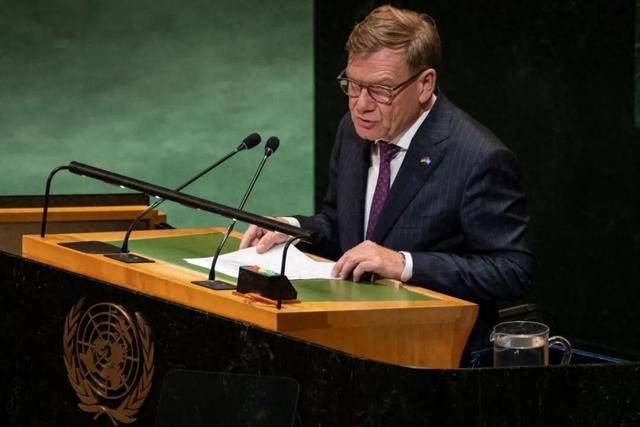 德国外交部长瓦德富尔在联合国总部发表讲话