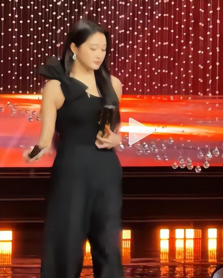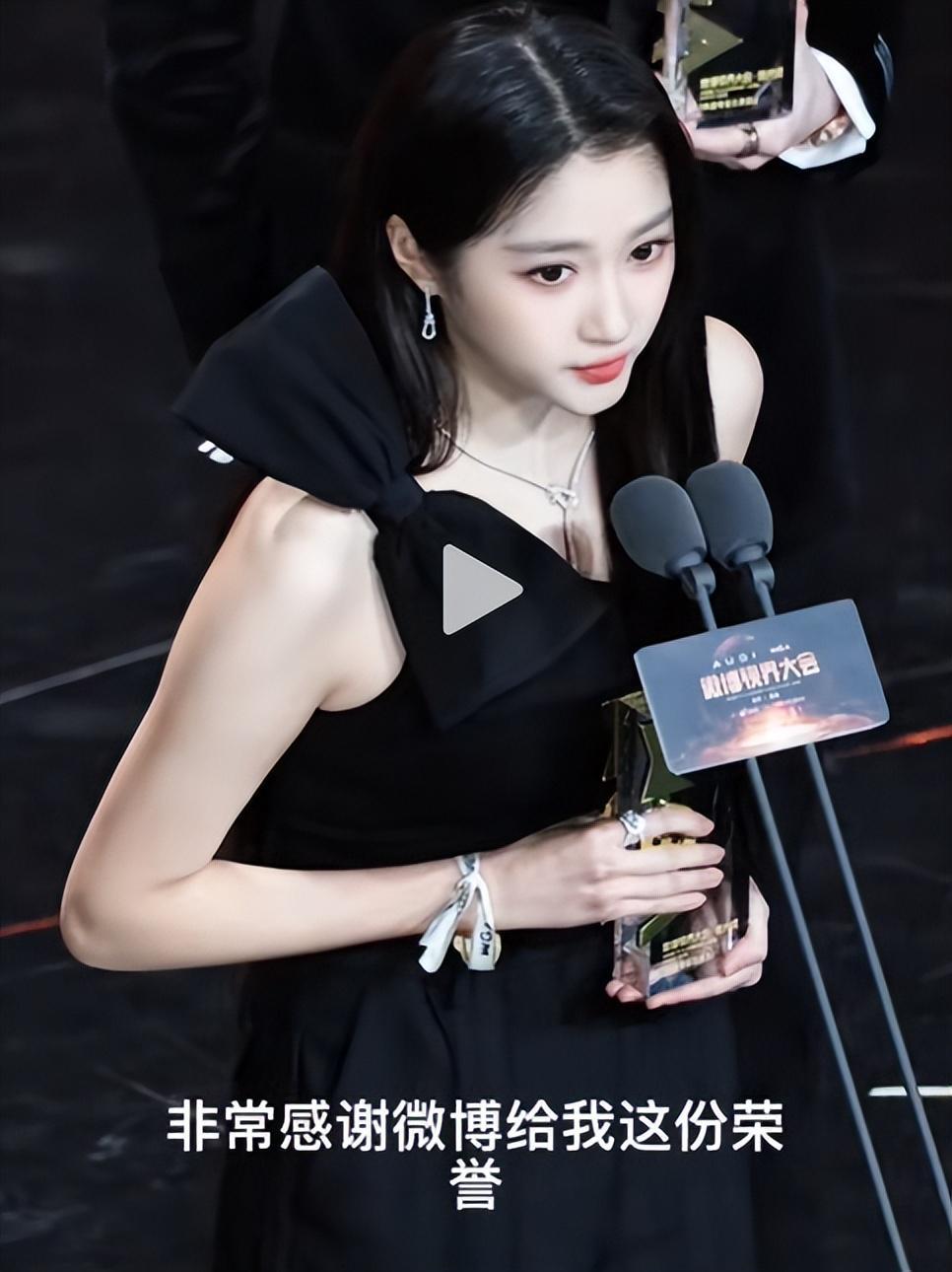 关晓彤身着一身剪裁利落的黑色礼服走上领奖台。