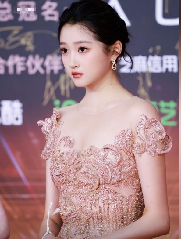 2025 微博视界大会红毯,关晓彤一袭玫瑰金薄纱礼裙打破固有印象。