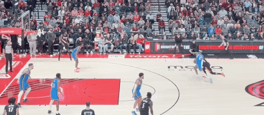 然而次节比赛再战,雷霆有些松懈,开拓者加强防守强度,利用快速的转换迫近比分。格兰特反击连中三分,分差瞬间缩小到6分!雷霆赶紧请求暂停。暂停回来,开拓者的进攻手感依旧强势,里斯远投命中,分差缩小到一分。亚历山大突破止住颓势,半场比赛结束,雷霆保持8分的优势。