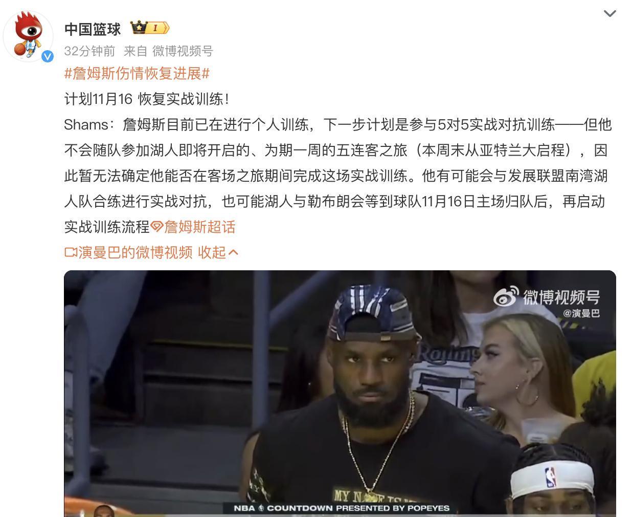 本赛季开赛以来,詹姆斯一直因伤病未能出战。据权威媒体最新报道,詹姆斯的复出时间已经提上议程。他目前正在进行个人训练,并将很快参与5对5的实战对抗训练。不过,他不会随队出征后续比赛,而是留在球队中进行康复准备。