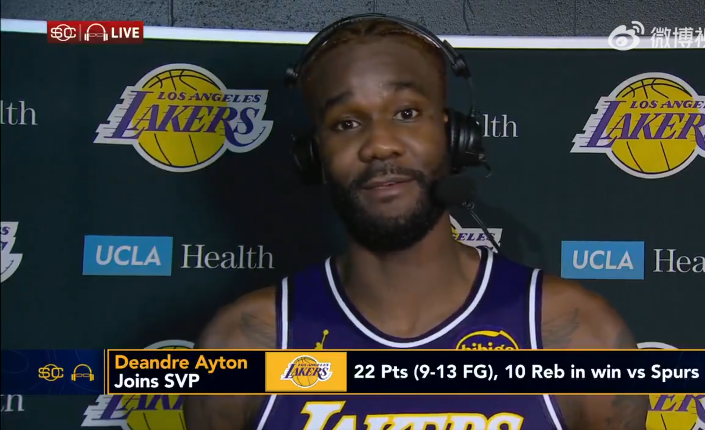 然而,采访进行到一半时,一个有趣的插曲发生了。正当艾顿认真回答问题时,詹姆斯从旁边路过,直接大喊打断了采访:“耶,5连胜!耶,5连胜!”这一突如其来的“抢镜”让艾顿露出了憨厚的笑容,场面十分欢乐。