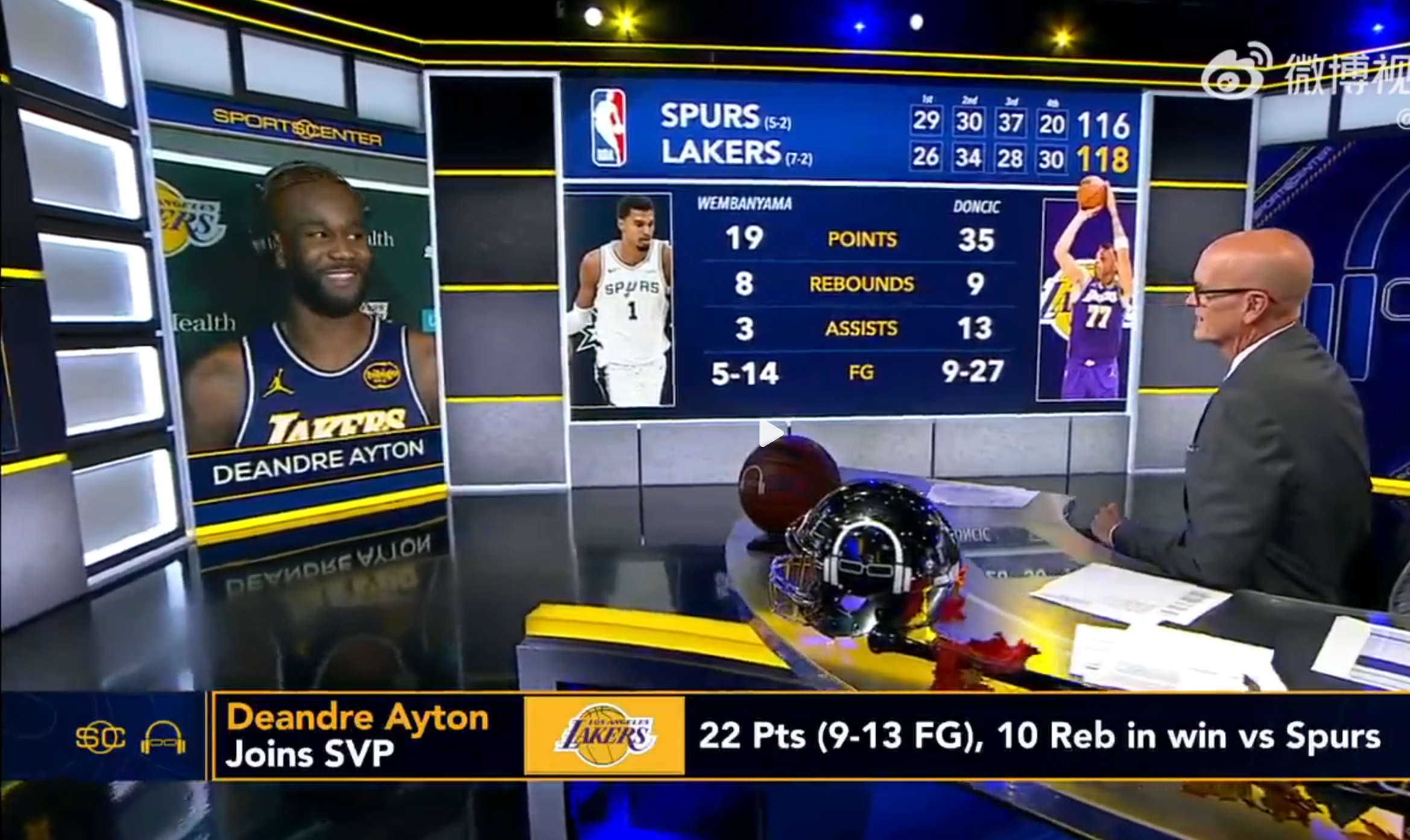 北京时间11月6日,NBA常规赛迎来一场焦点对决,湖人队以118-116惊险战胜马刺队,豪取五连胜!本场比赛,湖人中锋艾顿表现抢眼,全场13投9中,罚球4中4,砍下22分10篮板的两双数据,另有1抢断2盖帽入账,成为球队获胜的重要功臣。