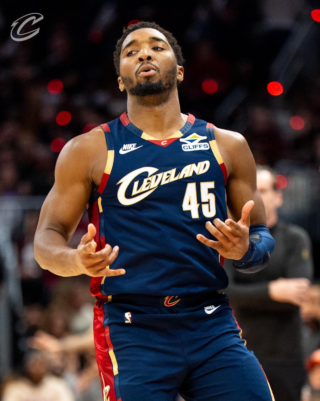 此役,米切尔以71%的超高命中率轰下全场最高分,并投进6记三分球,罚球命中率100%。他不仅创下个人赛季得分新高,还成为骑士队史第五位单场砍下45+的球员,追平欧文并列队史第二,仅次于勒布朗·詹姆斯的18次。