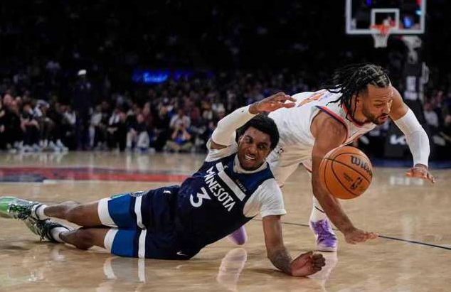 本场比赛,尼克斯先发为阿努诺比、唐斯、罗宾逊、布里奇斯、布伦森;森林狼先发为麦克丹尼尔斯、兰德尔、戈贝尔、迪文岑佐、爱德华兹。首节比赛开打,森林狼便抢占先机,通过多点冲击内线的攻势轰出15-7的开局。尼克斯随即展开强势反击,内外线火力全开迅速实现反超,两队就此陷入胶着拉锯。森林狼凭借外线三分火力回敬攻势,尼克斯则以一波7-0的凌厉反击予以回应。关键时刻森林狼外线手感爆发,接连命中4记三分,最终以58-54的比分带着微弱优势结束上半场。