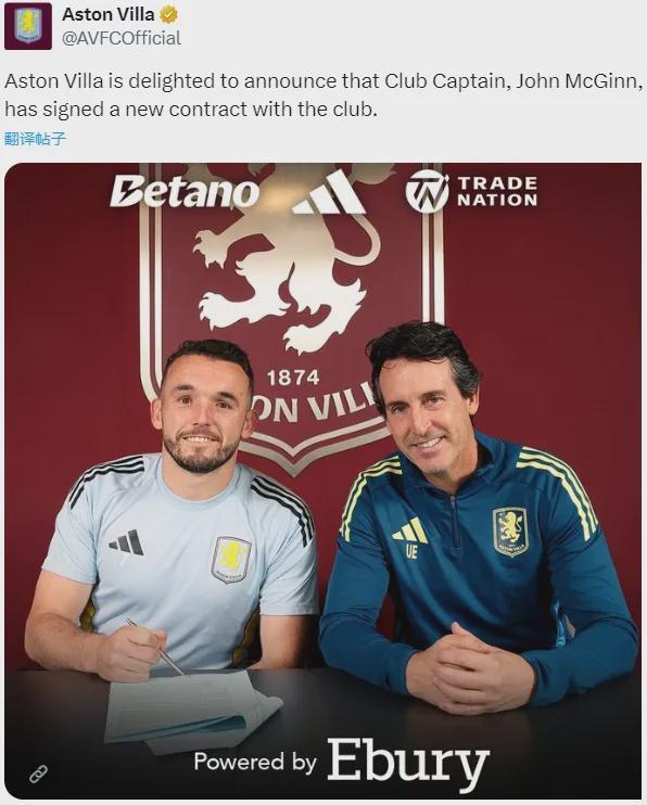 阿斯顿维拉官方宣布,与队长约翰·麦克金续约至2028年。自2018年加盟以来,麦克金已为球队出战299场,贡献33球41助攻,成为中场核心力量。