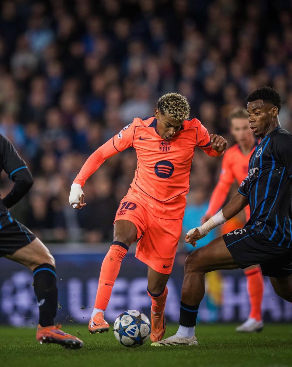 下半场,第61分钟,费尔明脚后跟巧妙分球,亚马尔拿球后连续变向晃开空间,冷静推射破门,2-2!然而巴萨的快乐只维持了120秒,第63分钟,瓦纳肯送出直塞,福布斯单刀挑射入网,再度上演传射秀,布鲁日3-2领先!第77分钟,亚马尔又一次扛起球队,他右路晃动后传中,措利斯解围失误自摆乌龙,3-3!巴萨三度落后,三次扳平比分,亚马尔此役的表现堪称顶级。
