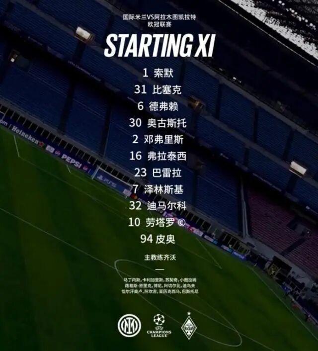 本场比赛,国米主帅为了应对接下来的一周双赛,对阵容进行了大规模的轮换。后防线上,奥古斯托、德弗里和比塞克搭档,其中德弗里拖后,以减少比塞克的冒失失误。中场方面,巴雷拉担任了恰尔汗奥卢的职责,两侧配上了泽林斯基和弗拉泰西。前场则是由劳塔罗和皮奥组成。