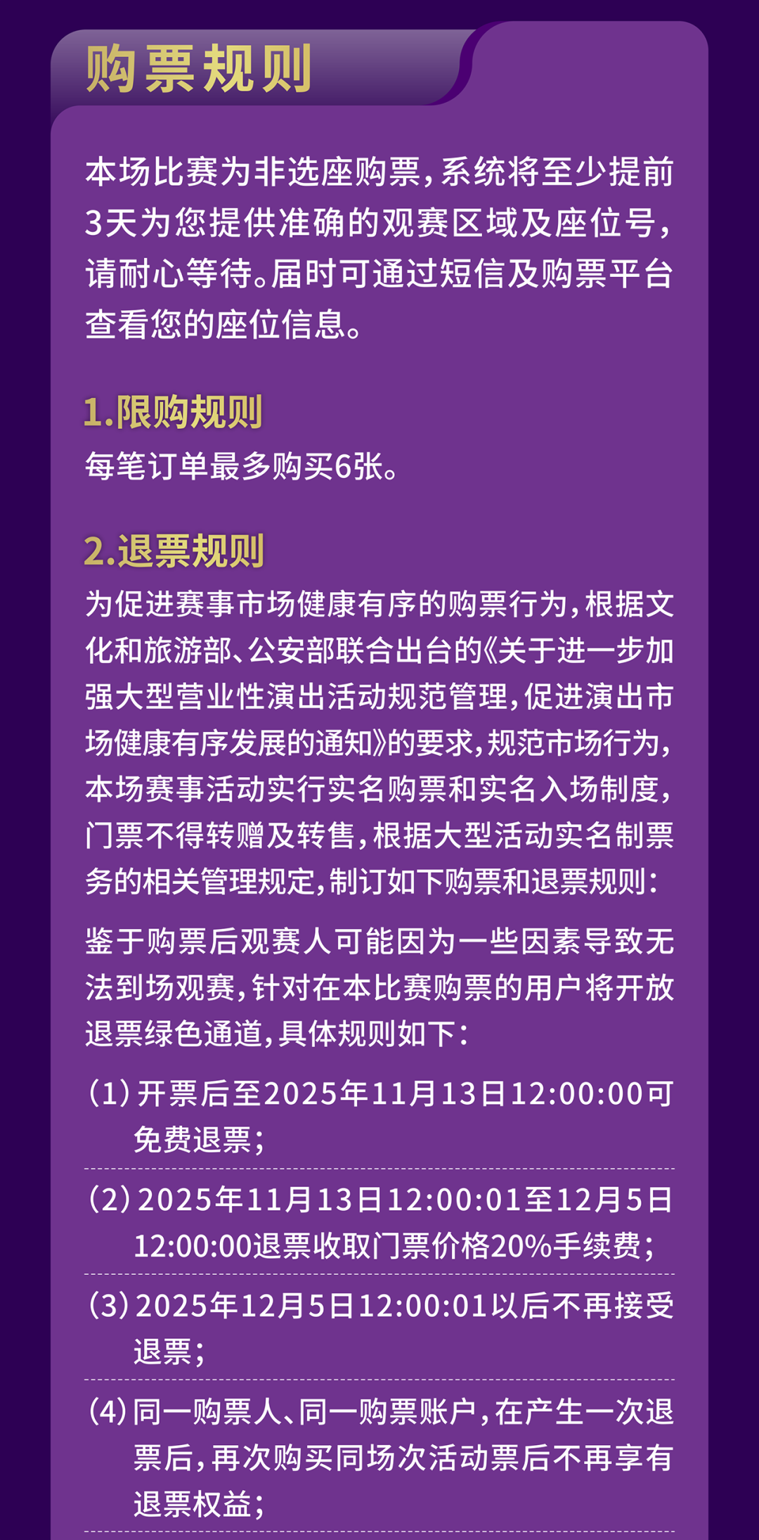 购票渠道方面,球迷可通过「中国足协票务」官方APP、苏州奥体中心小程序及大麦网三大平台抢购。需特别注意的是,本次赛事实行实名制购票,每张身份证限购2张,入场时需核验身份证与门票信息。
