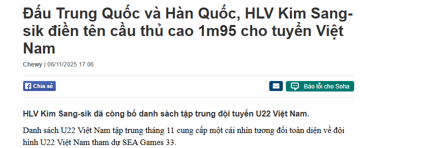 据越媒预计,此次热身赛将由越南本土教练带领球队前往成都。而金相植则会将全部精力投入到东南亚运动会以及U23亚洲杯的研究中。