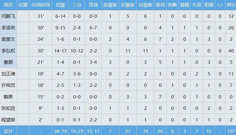 此役,上海队的李弘权成为了全场最耀眼的明星。他投篮17中14,其中三分球更是12中10,狂砍40分并摘下11个篮板,贡献了一场大号两双的惊艳表现。对于李弘权而言,篮筐仿佛变得如大海般宽阔,任他肆意驰骋。