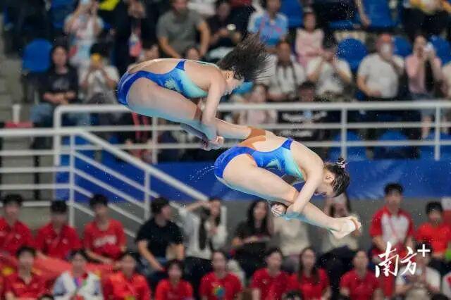 陈芋汐与掌敏洁在比赛中展现出了极高的竞技水平,每一跳都精准无误,最终以总分优势夺冠。而全红婵与王伟莹作为广东队的代表,虽然未能站上领奖台,但她们在比赛中的表现同样值得称赞,尤其是全红婵,她的每一次跳跃都吸引了众多观众的目光。