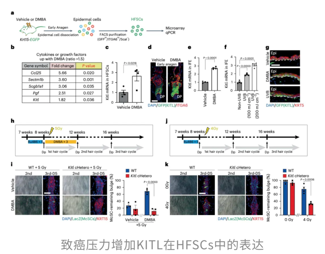 实验数据显示,DMBA处理组McSCs不仅未被耗尽,反而向表皮输出分化子代,形成局部黑色素细胞病变。这与IR处理后McSCs大量耗竭、毛发迅速变白的现象形成强烈对比,揭示了不同压力源对干细胞命运的截然影响。
