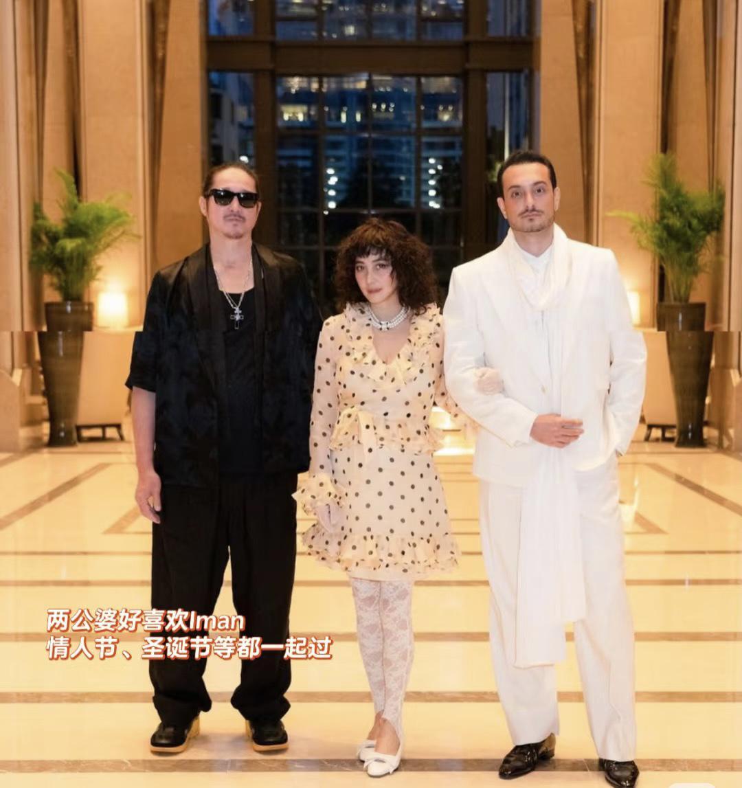 夫妻俩都很喜欢Iman,他们甚至会一起过圣诞节、情人节。合影的时候,何超仪站在中间,还挽着Iman的手臂,显得十分亲密。