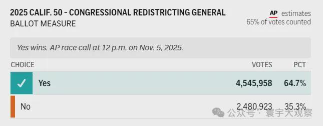 加州政治格局发生重大变化,第50号提案获得通过,新的联邦众议院选区地图即将生效。当前加州52个众议院选区中,民主党占据43席,共和党9席;新选区地图将增至48个民主党优势选区,仅4个共和党优势选区。这一调整源于德克萨斯州早前重划选区新增5个共和党席位,加州通过全民公投新增5个民主党席位予以抵消。与德州通过州议会重划不同,加州选区调整需经全民公投决定。
