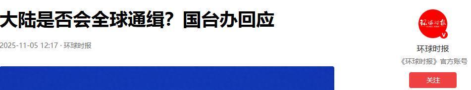 2025-11-05 12:17·环球时报 大陆是否会全球通缉?国台办回应