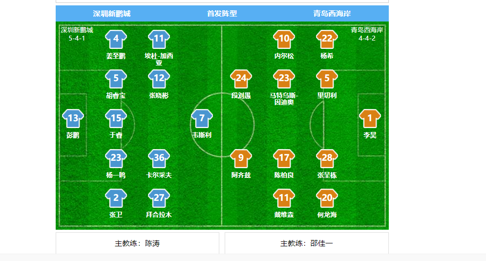 在执教青岛西海岸期间,邵佳一主要使用的阵型是防守端的4-4-2以及进攻时的2-3-2-3。无论哪套站位,都可以清晰发现是双后腰组合。