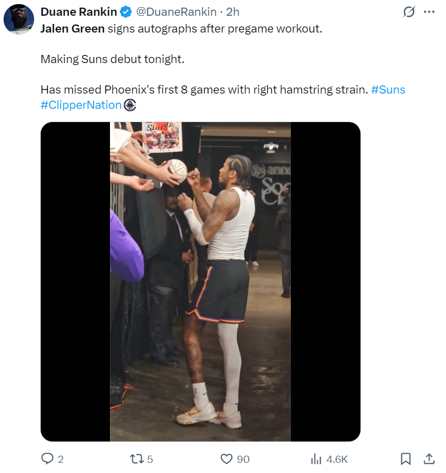尽管在交易初期,不少人认为杰伦-格林是火箭与太阳交易中的“负资产”,但在凤凰城,他依然拥有众多支持者。赛前,众多球迷纷纷围堵格林索要签名,而格林也展现出了暖心的一面,一一满足了球迷们的要求。