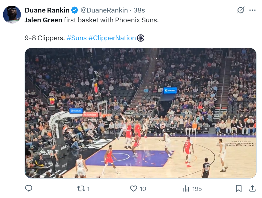 比赛开始后,杰伦-格林迅速进入状态。他持球突破三人防线,完成个人太阳生涯的首分。随后,他又连续命中两记三分球,首节便砍下8分1助攻1篮板,表现抢眼。他的出色发挥,也为太阳队奠定了良好的开局。