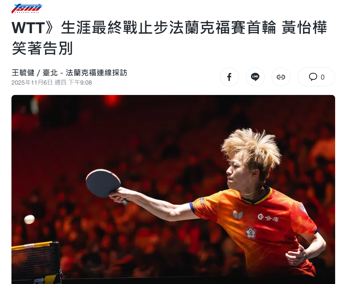 卸下运动员身份的黄怡桦,将正式转型为母队金库银行的教练。台媒评价称,这位传奇选手将在不同岗位继续发光发热。值得一提的是,上个月的亚锦赛期间,黄怡桦便已提前与孙颖莎、王曼昱、申裕斌等名将合影留念,当时她便透露了法兰克福站后退役的计划。如今,她带着满满的荣誉与祝福,开启了人生的新篇章。