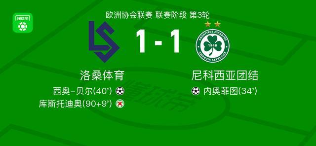 北京时间11月7日,欧洲协会联赛联赛阶段第3轮迎来一场焦点对决,洛桑体育坐镇主场迎战尼科西亚团结。本场比赛双方攻防节奏紧凑,最终以1-1握手言和。尼科西亚团结凭借内奥菲图的进球率先打破僵局,洛桑体育则依靠西奥-贝尔的破门迅速扳平比分,下半场补时阶段库斯托迪奥罚失点球,错失绝杀机会。