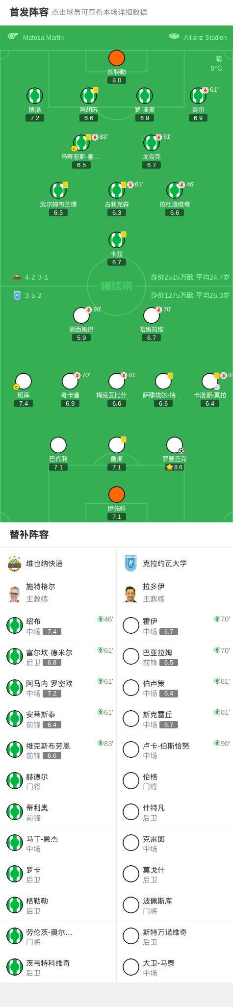 北京时间11月7日,欧洲协会联赛联赛阶段第3轮迎来一场焦点对决,奥地利劲旅维也纳快速坐镇主场迎战罗马尼亚球队克拉约瓦大学。经过90分钟激战,克拉约瓦大学凭借罗曼丘克的制胜进球,以1-0的比分力克对手,全取三分。