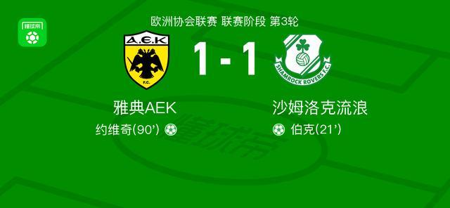北京时间11月7日凌晨,2025/26赛季欧洲协会联赛联赛阶段第3轮展开焦点对决,希腊劲旅雅典AEK坐镇主场迎战爱尔兰球队沙姆洛克流浪。经过90分钟激战,双方凭借各自点球机会1-1握手言和,各取关键积分。