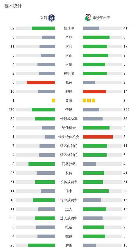 从赛后技术统计来看,两队控球率接近,采列以52%稍占优势。射门次数上,主队14次射门7次射正,效率明显高于客队的9次射门3次射正。角球数方面,采列也以6-3领先。这些数据在一定程度上反映了比赛的最终走向。