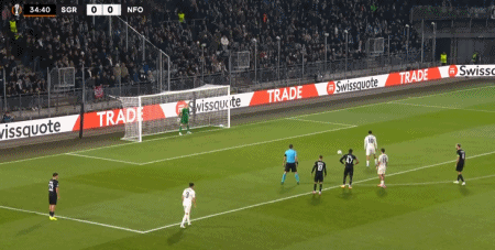 比赛第35分钟,场上风云突变。格拉茨风暴球员艾武在禁区内手球犯规,裁判果断判罚点球。诺丁汉森林核心球员吉布斯-怀特主罚点球,但他的射门被格拉茨风暴门将克里斯滕森神勇扑出,诺丁汉森林错失领先良机。