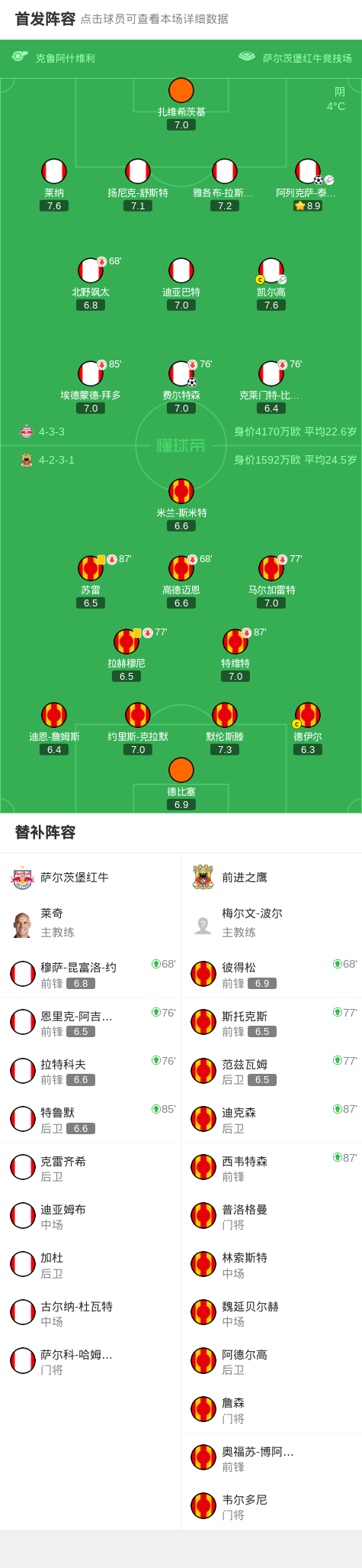 第80分钟,萨尔茨堡红牛扩大战果:替补登场的凯尔高在右路送出低平传中,阿列克萨-泰尔齐奇包抄到位劲射得手,将比分锁定为2-0。这粒进球不仅体现了泰尔齐奇全面的进攻属性,也彰显了球队替补席的深度。