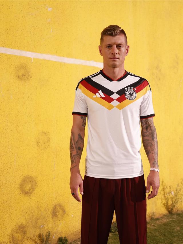 克罗斯在宣传中详细介绍了这款由阿迪达斯设计的德国世界杯战袍,他表示:“尽管我不会再穿着它上场,但这件球衣确实很有吸引力。无论是设计还是配色,都展现出了德国队的独特风格。而且,裤子也值得称赞,整体搭配非常完美。”
