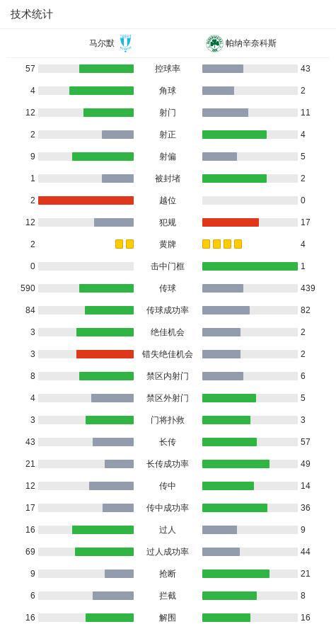 从技术统计来看,两队控球率几乎持平(马尔默51% vs 帕纳辛奈科斯49%),但客队在射门效率上更胜一筹。全场马尔默完成12次射门仅3次射正,而帕纳辛奈科斯7次射门便收获1粒进球,展现了更高的得分转化率。